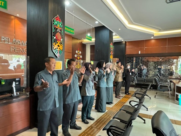 Internalisasi Budaya Kerja, Petugas PTSP PA Palangka Raya Rutin Gembungkan Semangat Melalui Yel-Yel “BAHALAP”