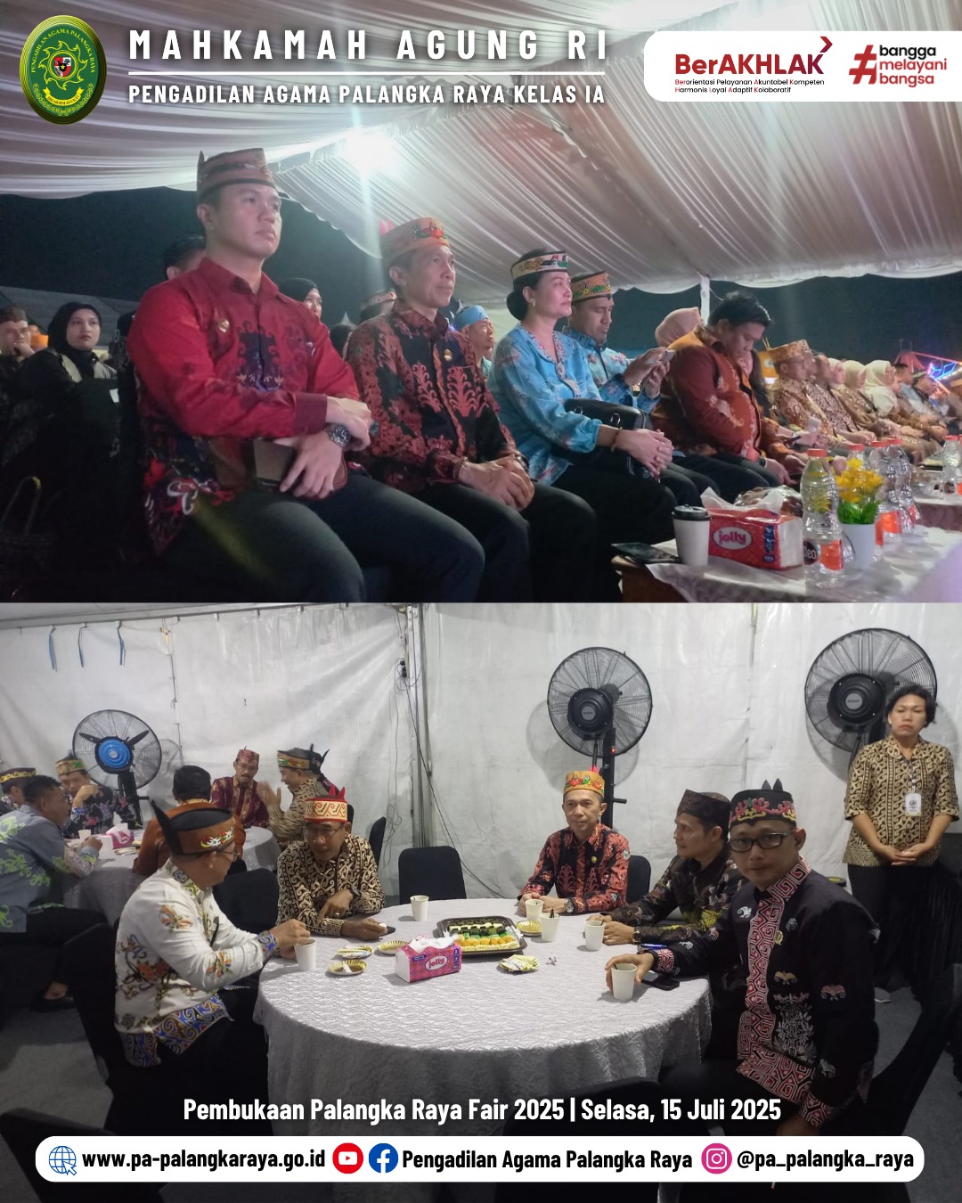 Palangka Raya, – Ketua Pengadilan Agama (PA) Palangka Raya, Dr. Yusri, S.Ag., M.H., menghadiri undangan pembukaan Palangka Raya Fair 2025 yang dilaksanakan di Halaman GOR Serba Guna Palangka Raya. Acara ini merupakan salah satu even besar di Kota Palangka Raya yang menampilkan berbagai produk unggulan dari UMKM lokal, industri kreatif, dan lain-lain.
