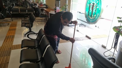 Petugas kebersihan Pengadilan Agama Palangka Raya melaksanakan kegiatan bersih-bersih di area Pelayanan Terpadu Satu Pintu (PTSP) pada pagi hari sebelum layanan resmi dibuka. Kegiatan ini merupakan rutinitas yang dilakukan untuk memastikan area pelayanan selalu dalam kondisi terbaik saat masyarakat mulai berdatangan. (28/11/2025).