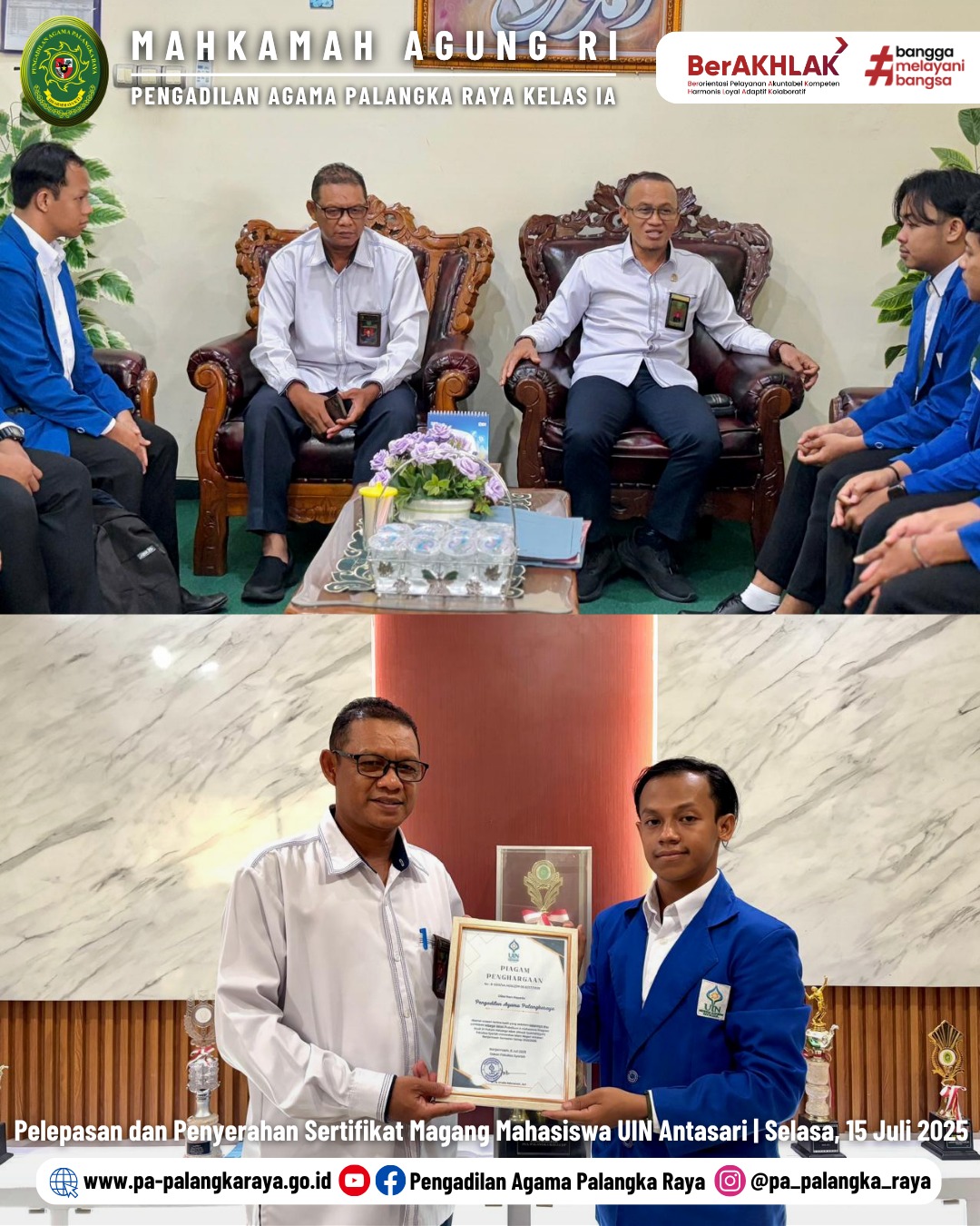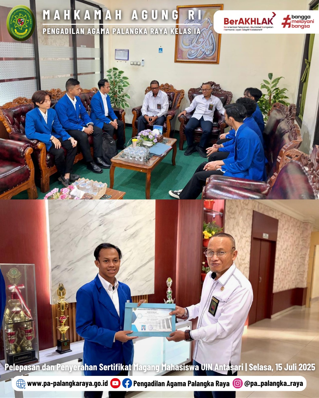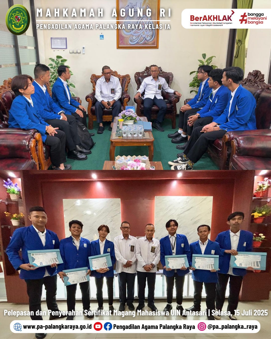 PA Palangka Raya Lepas Mahasiswa Magang UIN Antasari dengan Penyerahan Sertifikat