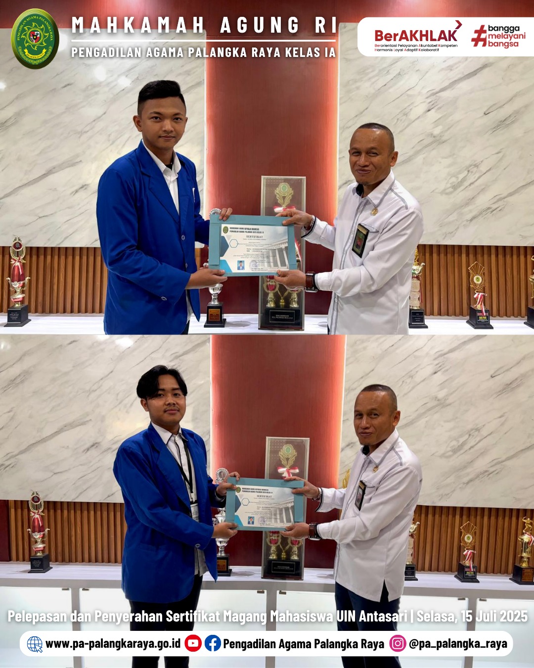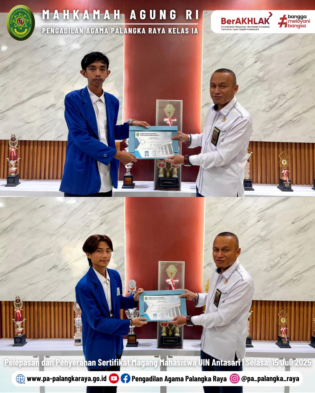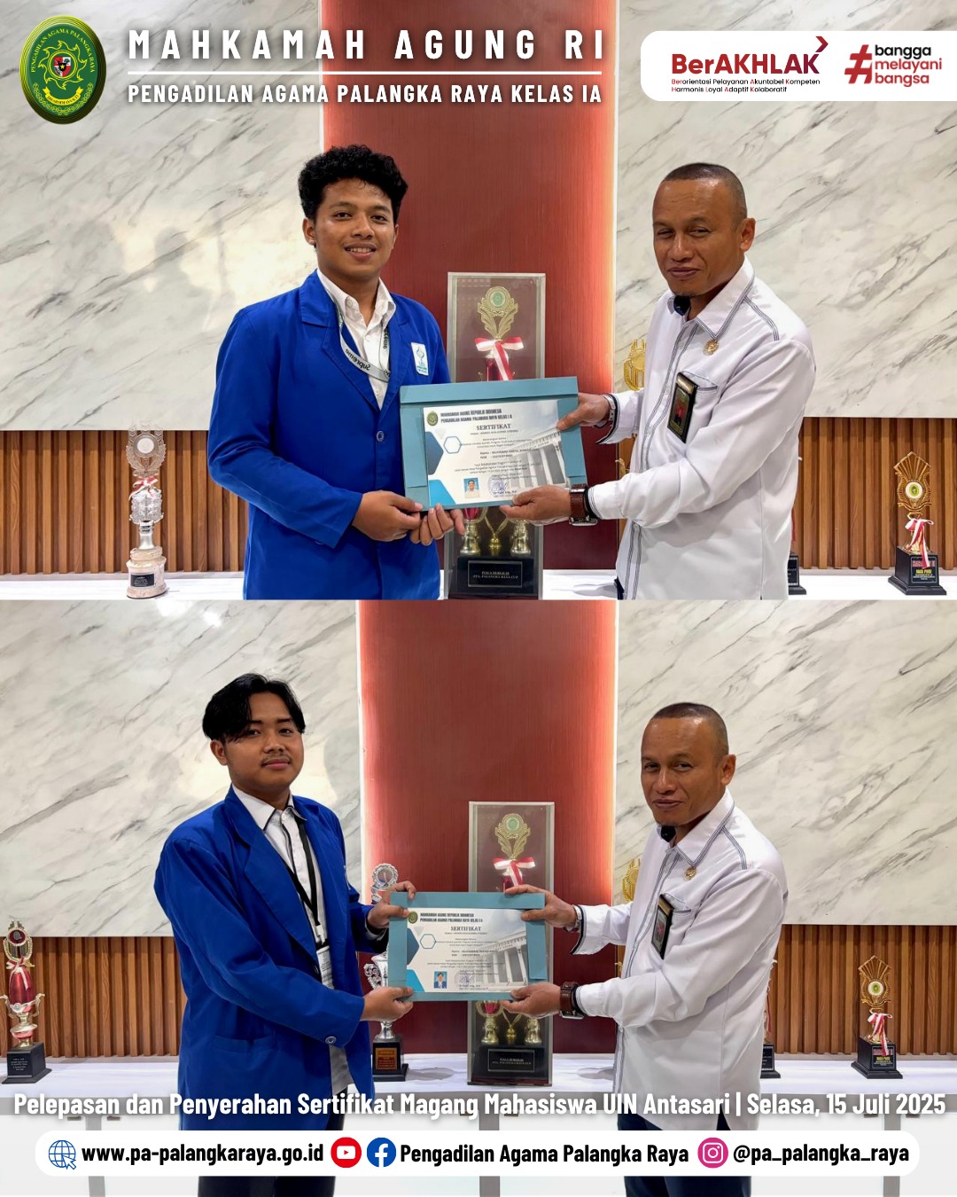 PA Palangka Raya Lepas Mahasiswa Magang UIN Antasari dengan Penyerahan Sertifikat