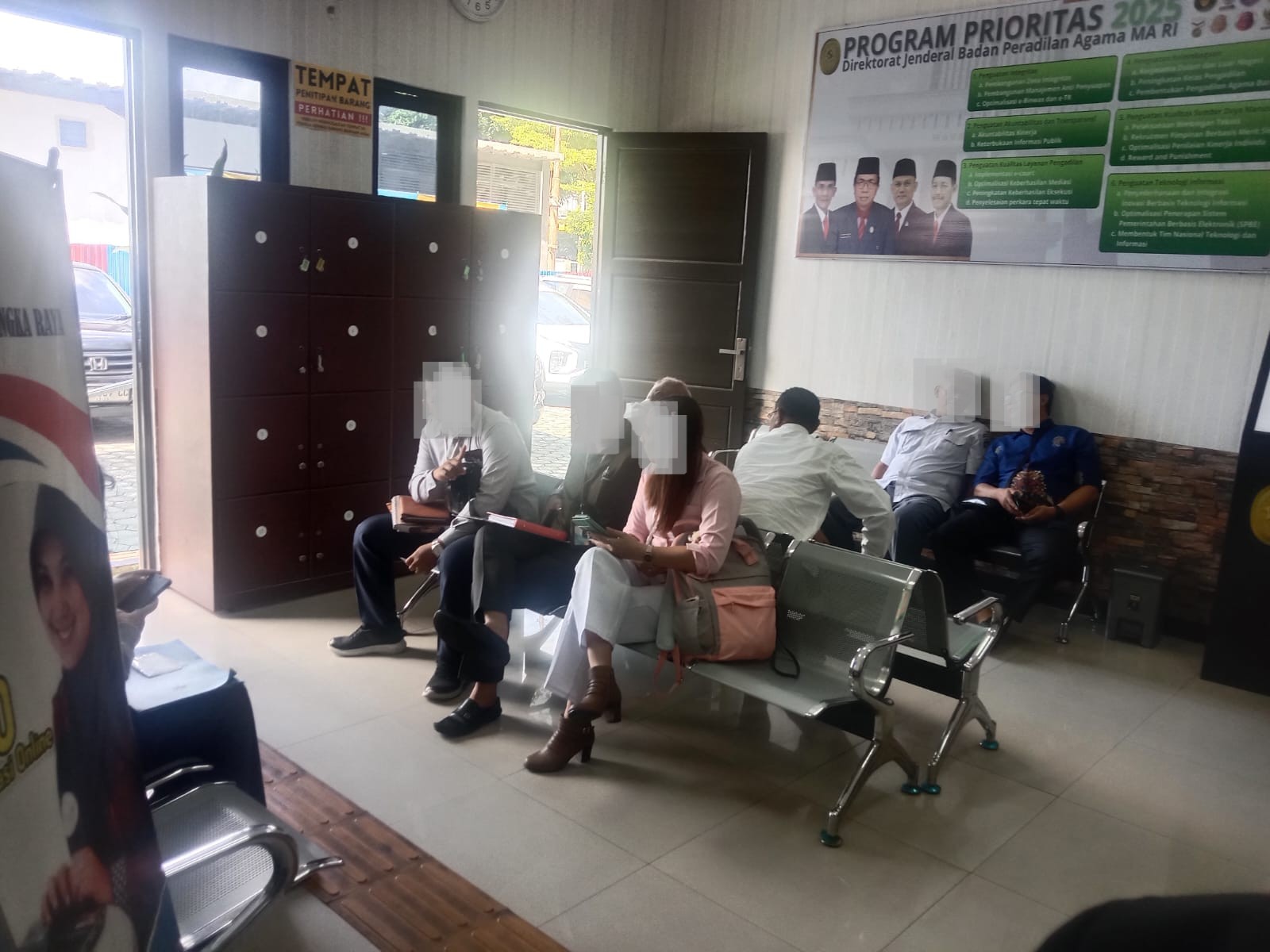 Pelayanan di ruang tunggu tetap dikondisikan dengan baik oleh Basuni yang senantiasa mengarahkan para pihak sesuai alur sidang. Suasana ruang tunggu tampak tertib, dengan pengunjung duduk teratur sambil menunggu giliran pemanggilan. Kecekatan petugas membuat proses persidangan berlangsung efektif hingga sesi petang menjelang.