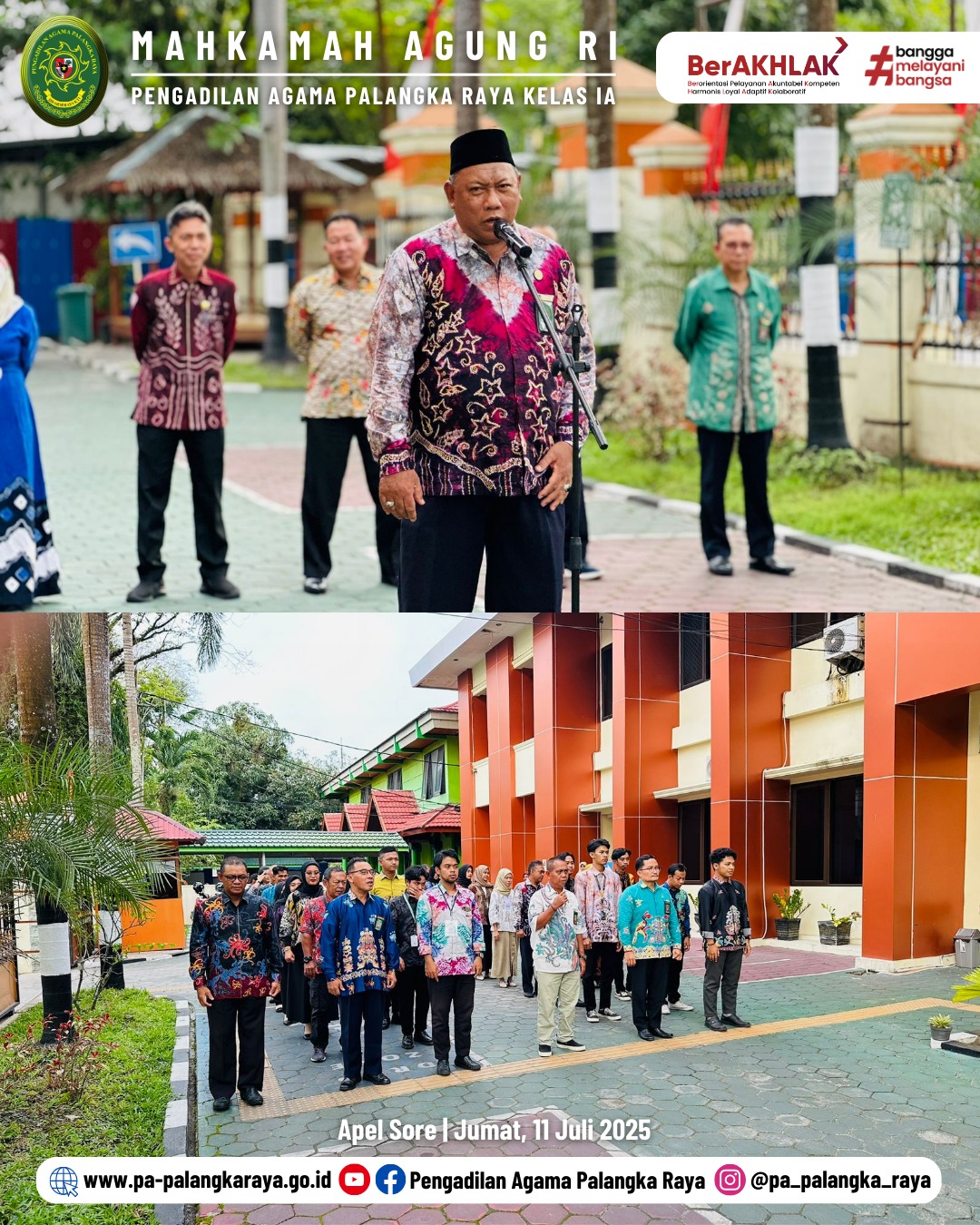 Menutup akhir pekan Pengadilan Agama Palangka Raya kembali melaksanakan apel Jum’at sore.