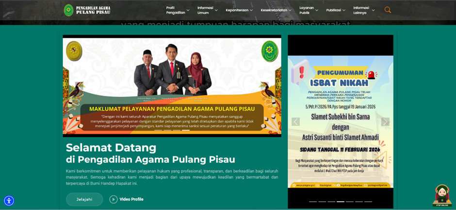 Senin, 02 Februari 2026. Kepala Sub Bagian (Kasubbag) Perencanaan, TI dan Pelaporan (PTIP) Pengadilan Agama Pulang Pisau terus berupaya meningkatkan performa website kantor. Hal ini bertujuan agar setiap informasi yang ditampilkan pada website, tidak mengalami kendala apapun atau bisa disebut 100% berjalan normal.