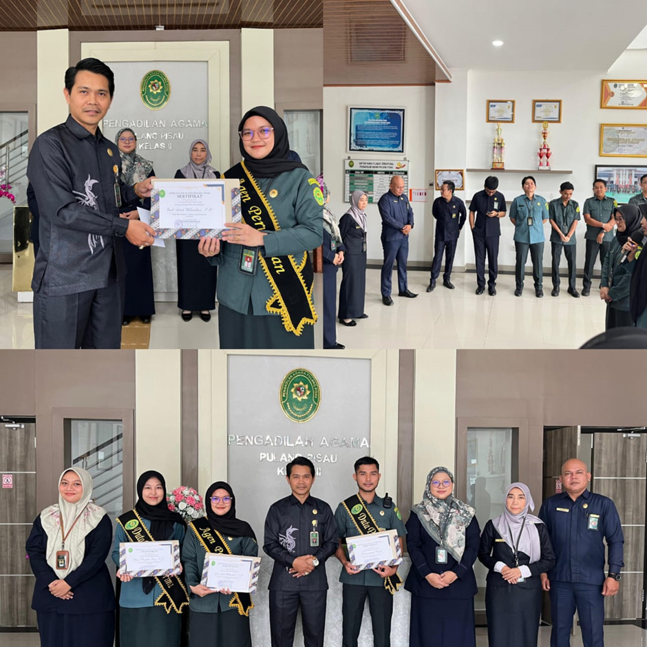 Guna meningkatkan kualitas sumber daya manusia, dilaksanakan Briefing Pegawai pada Selasa pagi. Momen ini menjadi spesial dengan diumumkannya Agen Perubahan 2026 dan Duta Pelayanan 2026. Pimpinan secara langsung menyematkan selempang dan memberikan cinderamata kepada para pemenang sebagai bentuk apresiasi atas dedikasi mereka dalam menjaga integritas dan keramahan layanan. Hari Rabu diisi dengan dua agenda besar yaitu Gerakan Monitoring dan Evaluasi (GEMA): Menghadirkan Panitera Pengganti PTA Palangka Raya, Hj. Ai Sundayati, S.Ag., sebagai narasumber untuk memastikan standar kinerja tetap berada pada jalur yang tepat. Kemudian Peringatan Isra’ Mi’raj: Pukul 10.00 WIB, suasana kantor berubah khidmat. PA Pulang Pisau menyelenggarakan peringatan Isra’ Mi’raj Nabi Muhammad SAW dengan menghadirkan penceramah Drs. H. Khairil Anwar. Dalam tausiyahnya, tokoh agama Kabupaten Pulang Pisau tersebut menekankan pentingnya amanah dalam menjalankan tugas kedinasan.