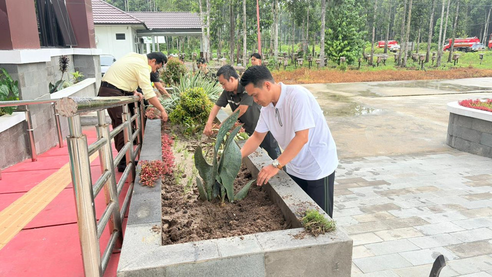 Rawat Lingkungan Kerja, Pengadilan Agama Pulang Pisau Laksanakan Jumat Bersih dengan Perawatan Tanaman