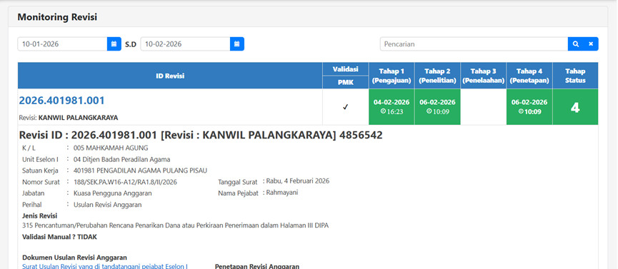 396. PA Pulang Pisau Telah Menyelesaikan Revisi DIPA 401981 Tahun Anggaran 2026