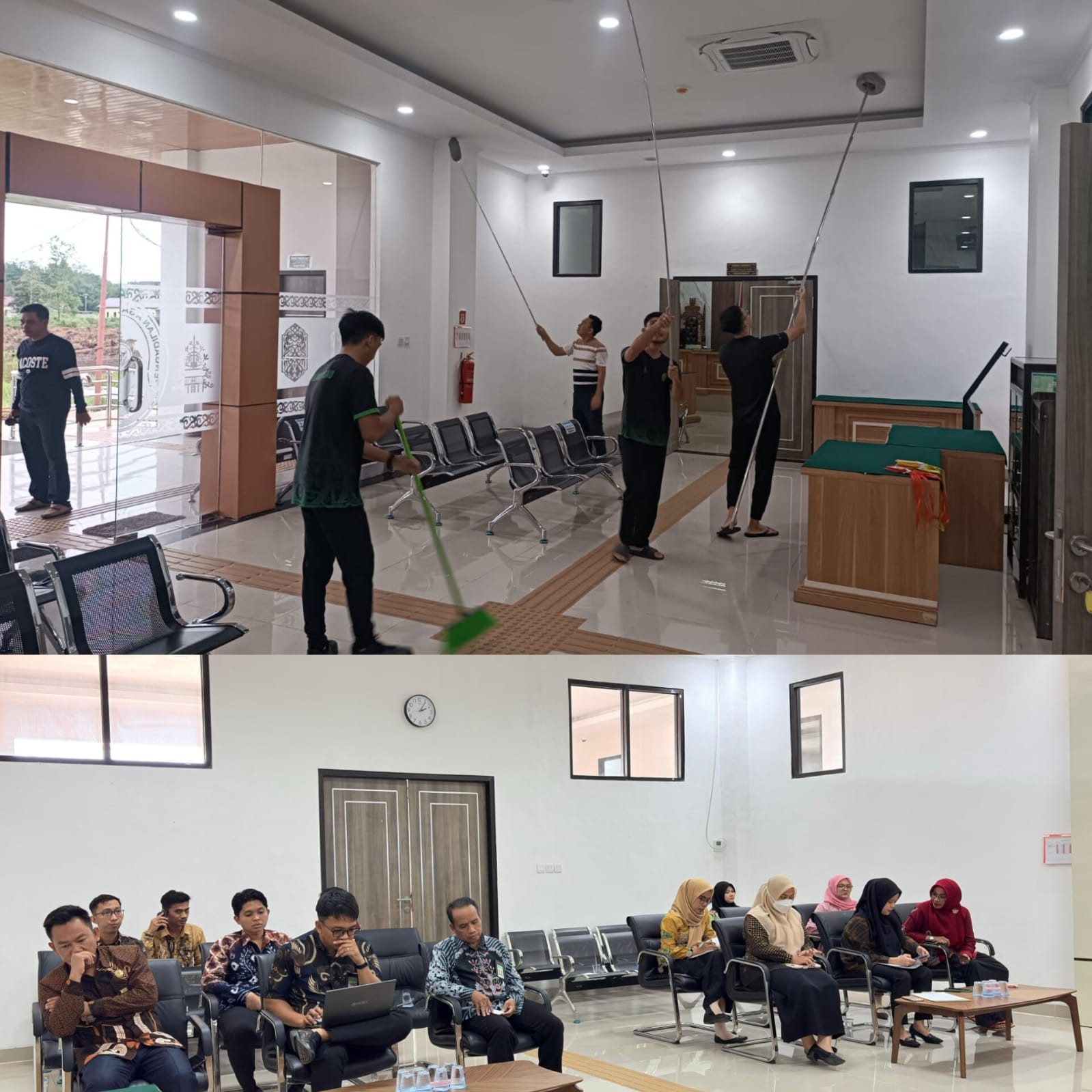 Kemudian pada Jumat pagi tanggal 12 September 2025 dilaksanakan kegiatan Jumat bersih dengan bergotong-royong membersihkan seluruh area baik di dalam maupun di luar kantor PA Pulang Pisau. Pada siang harinya para pegawai PA Pulang Pisau mengikuti kegiatan Rapat Koordinasi bulan September 2025 di ruang sidang utama. Akhirnya pekan kedua September 2025 ditutup dengan kegiatan Apel Jumat Sore di halaman kantor PA Pulang Pisau.