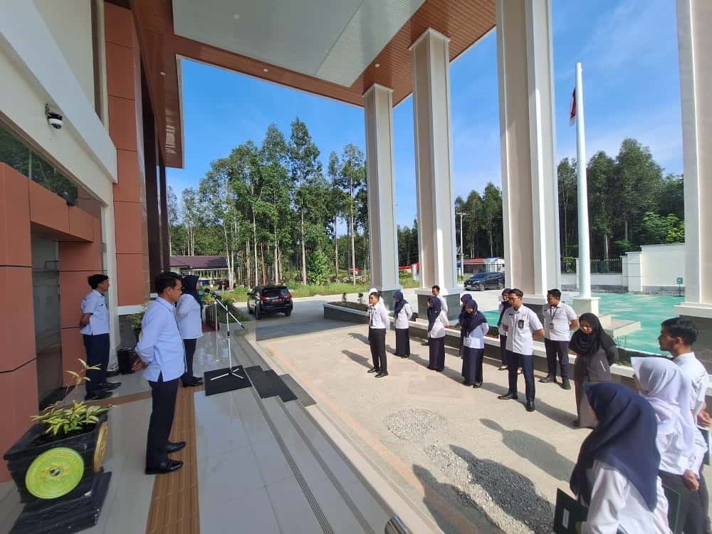 Pulang Pisau, 29 September 2025 – Pengadilan Agama Pulang Pisau melaksanakan kegiatan apel senin yang dilaksanakan pada halaman kantor (29/09/2025). Kegiatan apel pagi yang dilaksanakan pada pukul 08.00 WIB merupakan apel senin terakhir di bulan September 2025, bertindak sebagai pembina apel adalah y.m Hakim Pengadilan Agama Pulang Pisau Rahmatiah, S. Sy., M. H. dan Komandan Apel adalah Sdr. Ahmad Muzaki Junifaro, S.H. Kegiatan apel juga diikuti oleh Seluruh Hakim, Pejabat Struktural dan Fungsional, Pegawai Pengadilan Agama Pulang Pisau. Dalam amanatnya beliau menyampaikan pesan agar seluruh aparatur PA Pulang Pisau diharapkan dapat terus menjaga kedisiplinan, kebersamaan, dan semangat dalam memberikan pelayanan terbaik kepada masyarakat pencari keadilan. Apel pagi ini menjadi momen untuk memperkuat kedisiplinan, komunikasi internal, dan semangat kebersamaan seluruh Pegawai PA Pulang Pisau.