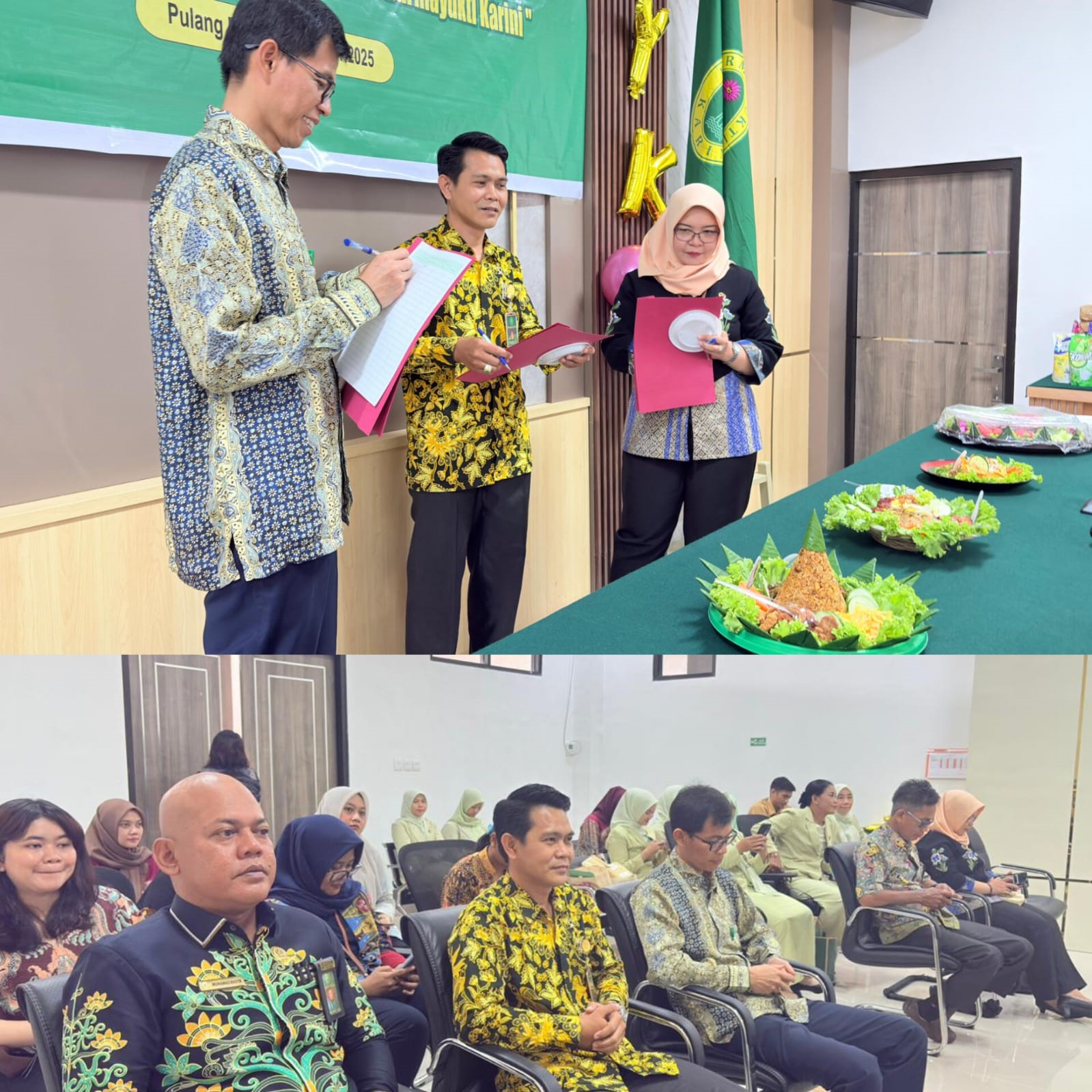 Pekan Kedua di bulan Oktober 2025, Pengadilan Agama Pulang Pisau melaksanakan beragam kegiatan sesuai dengan tugas pokok dan fungsi para Pegawai. Dimulai dengan apel senin pagi di halaman kantor PA Pulang Pisau, dilanjutkan dengan pemberian pelayanan kepada masyarakat pencari keadilan melalui meja Pelayanan Terpadu Satu Pintu (PTSP) PA Pulang Pisau dan pelaksanaan pelayanan persidangan. Selanjutnya Panitera PA Pulang Pisau Muhamad Basyir, S.H.I., menghadiri acara Penutupan Pembekalan, Pelantikan, dan Pengambilan Sumpah/Janji serta Penyerahan Surat Keputusan Pengangkatan Pegawai Pemerintah dengan Perjanjian Kerja (PPPK) Tahap II Formasi Tahun 2024 dan Calon Pegawai Negeri Sipil (CPNS) lulusan Institut Pemerintahan Dalam Negeri (IPDN) Formasi Tahun 2025, yang digelar di lingkungan Pemerintah Kabupaten Pulang Pisau, bertempat di Aula Banama Tingang Kantor Bupati Pulang Pisau. Masih di hari yang sama, Mediator PA Pulang Pisau Ina Aulia Rahayu, S.H. berhasil mendamaikan pihak berperkara sehingga keduanya rukun kembali dan tidak jadi bercerai.
