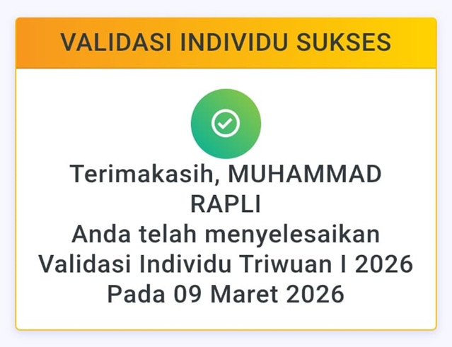 Pulang Pisau Dalam rangka memastikan keakuratan dan pembaruan data kepegawaian tenaga teknis, Pegawai Pemerintah dengan Perjajian Kerja (PPPK) Pengadilan Agama Pulang Pisau, Muhammad Rapli telah melaksanakan kegiatan validasi data kepegawaian Triwulan I Tahun 2026 pada SIKEP melalui aplikasi SIMTEPA Mahkamah Agung Republik Indonesia, pada hari Senin, 9 Maret 2026.