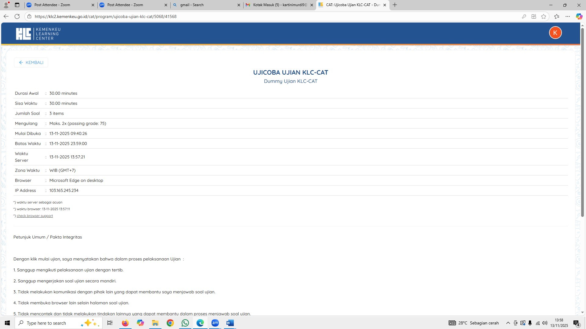 Pada hari keempat pelatihan bendahara tersebut, kegiatan dimulai pada pukul 08.00 WIB dan akan berakhir pada pada pukul 16.00 WIB. Pada pagi hari hingga pukul 12.00 WIB para peserta melakukan pembelajaran mandiri melalui website Kemenkeu Learning Center (KLC) dengan menyimak beberapa materi. Selanjutnya pada pukul 13.00 WIB para peserta melakukan Ujicoba Latihan Ujian Komprehensif. Dengan melakukan ujicoba, diharapkan para peserta tidak menemui kendala pada saat mengerjakan ujian yang akan dilaksanakan pada keesokan harinya dan mendapatkan nilai maksimal.