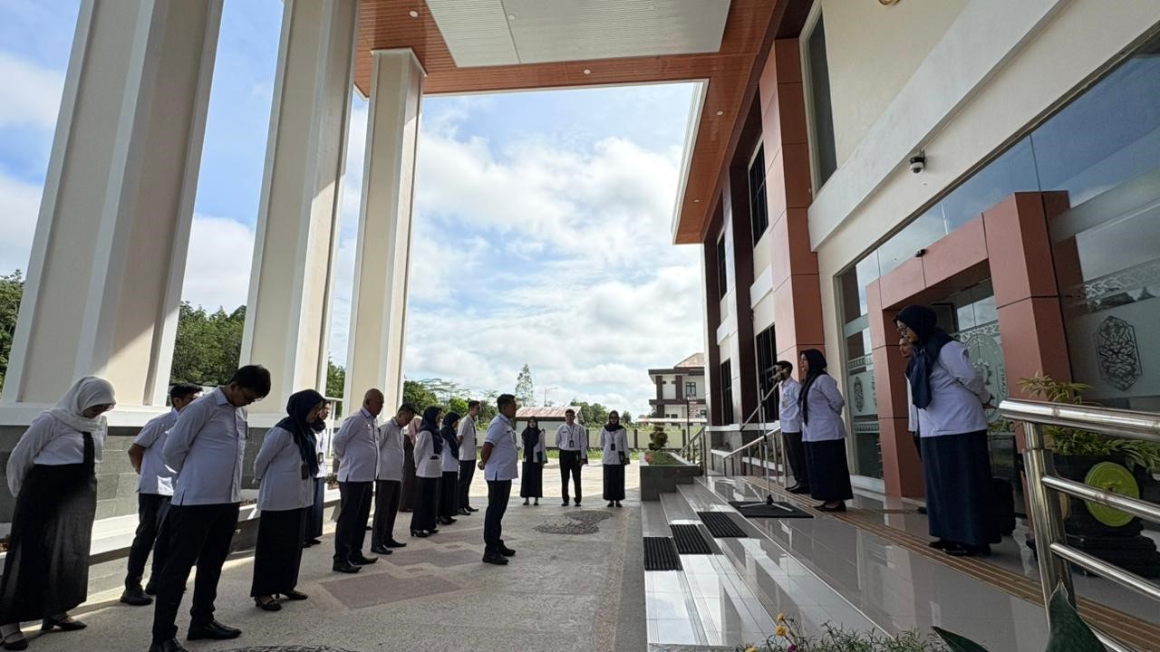 Pulang Pisau, 17 November 2025 – Pengadilan Agama Pulang Pisau melaksanakan kegiatan apel senin yang dilaksanakan pada halaman kantor (17/11/2025). Kegiatan apel pagi yang dilaksanakan pada pukul 08.00 WIB, bertindak sebagai pembina apel adalah y.m Hakim Pengadilan Agama Pulang Pisau Ina Aulia Rahayu, S.H. dan Komandan Apel adalah Sdr. Tesar Satria Nugraha, S.H. Kegiatan apel juga diikuti oleh Seluruh Hakim, Pejabat Struktural dan Fungsional, Pegawai Pengadilan Agama Pulang Pisau. Dalam amanatnya beliau menyampaikan pesan agar seluruh aparatur PA Pulang Pisau diharapkan dapat terus menjaga kedisiplinan, kebersamaan, dan semangat dalam memberikan pelayanan terbaik kepada masyarakat pencari keadilan. Apel pagi ini menjadi momen untuk memperkuat kedisiplinan, komunikasi internal, dan semangat kebersamaan seluruh Pegawai PA Pulang Pisau.