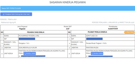 Pulang Pisau, 31 Maret 2026 – CPNS Dokumentalis Hukum pada Pengadilan Agama Pulang Pisau melaksanakan kegiatan pengisian Sasaran Kinerja Pegawai (SKP) untuk periode Triwulan I Tahun 2026. Kegiatan ini merupakan bagian dari kewajiban aparatur sipil negara dalam melakukan pelaporan dan evaluasi terhadap capaian kinerja selama tiga bulan pertama tahun berjalan.
