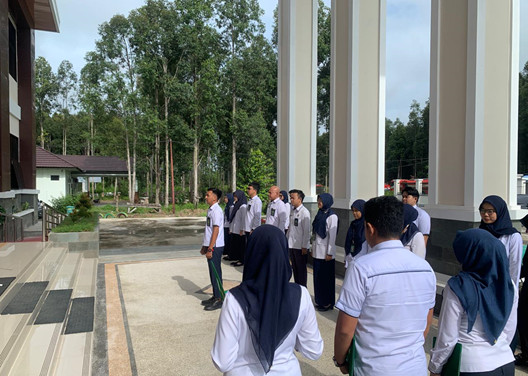 Pulang Pisau, 06 April 2026Pelaksanaan apel Senin pagi pada tanggal 6 April 2026 di Pengadilan Agama Pulang Pisau berlangsung dengan tertib dan khidmat. Dalam kegiatan tersebut, petugas apel menjalankan tugasnya sebagai pembaca acara dengan baik, mulai dari pembukaan hingga penutupan kegiatan sesuai dengan susunan yang telah ditetapkan.
