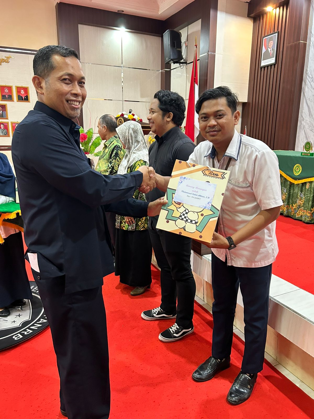 Bertempat di ruang aula, PA Sampit mengadakan Pengantar Alih Tugas Pegawai dan Honorer PA Sampit (28/7/2025). Setiap pertemuan selalu beriringan dengan perpisahan. Bapak Pahruddin, S.Ag., sudah membersamai di PA Sampit kurang lebih 19 tahun beliau akan pindah tugas sebagai Panitera Pengganti PTA Palangka Raya yang diperbantukan di PA Kuala Kurun. Kemudian Bapak Agus Heriyanto dan Muhammad Fahmi Khair, S.H, berpisah juga untuk memilih jalan hidup yang lebih baik lagi.