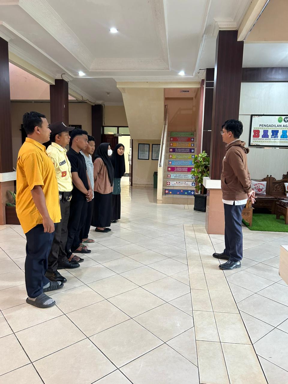 Sampit – Senin, 02 Februari 2026 pukul 15.30 WIB bertempat di Lobby Depan Plt. Kasubbag Umum dan Keuangan Pengadilan Agama Sampit Dwira Kurnianto Widodo, S.T. melaksanakan briefing sore bersama seluruh Tenaga Outsourcing PT. Jalasena Cakra Perkasa Satpam dan Petugas Kebersihan. Kegiatan ini rutin dilaksanakan setiap hari Senin sore.