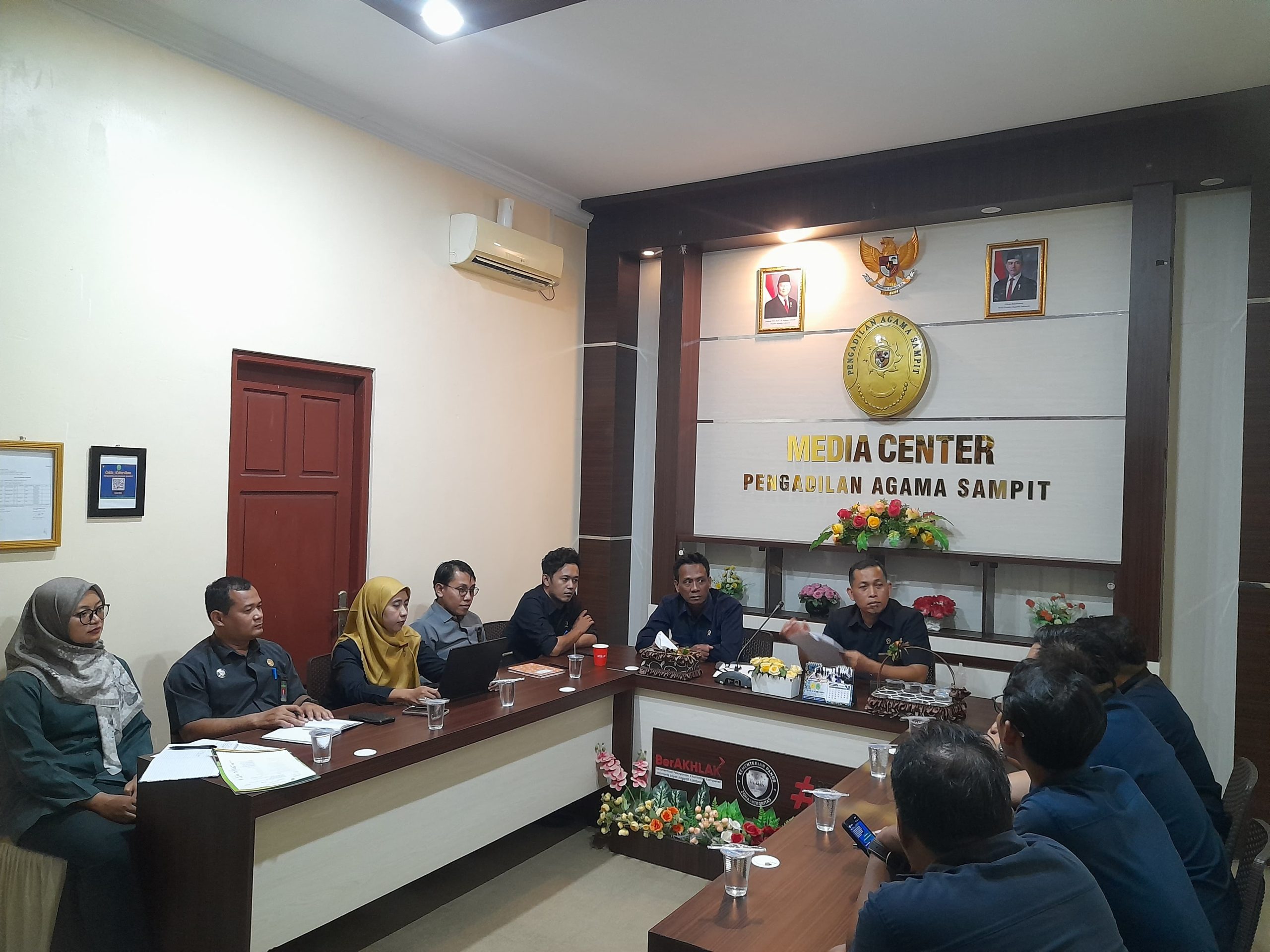 Bertempat di ruang media center, PA Sampit melaksanakan kegiatan Monitoring dan Evaluasi PT. POS Indonesia (5/8/2025). Kegiatan ini dihadiri oleh Ketua PA Sampit Bapak Mohammad Mahin Ridlo Afifi, S.H.I., M.H., didampingi Wakil Ketua Bapak Hairil Anwar, S.Ag, Hakim, Panitera, dan Juru Sita Pengganti PA Sampit.