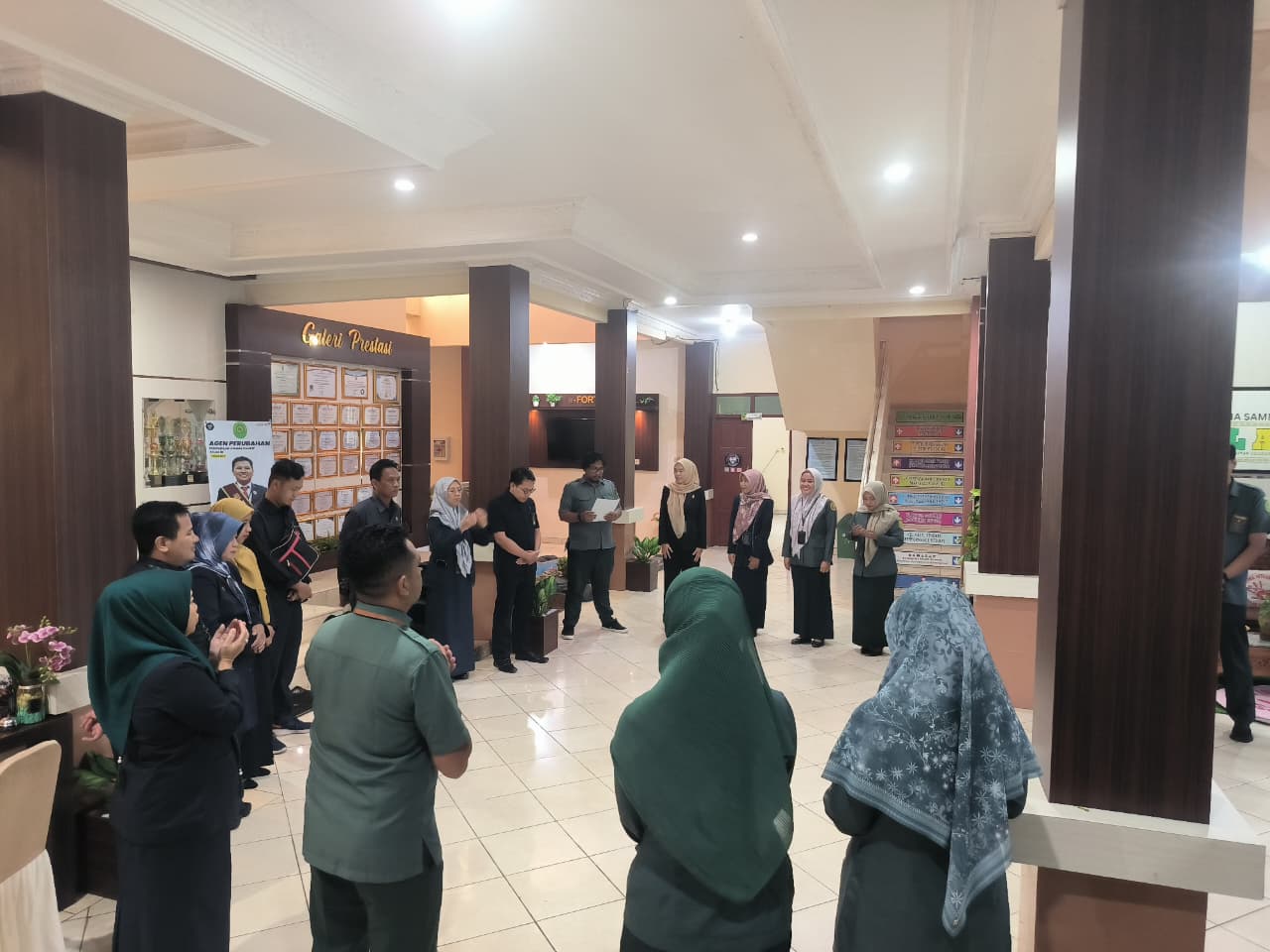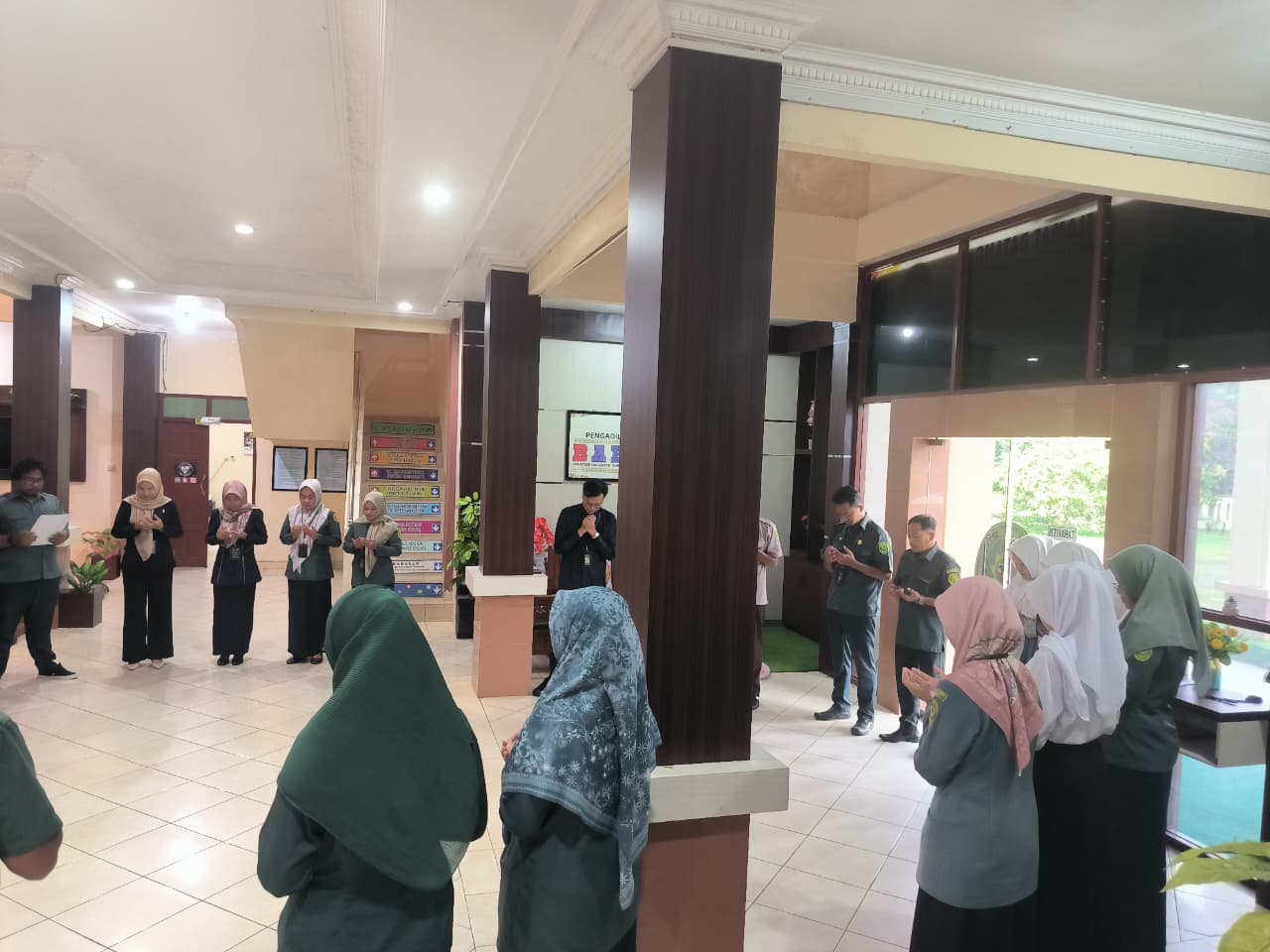 Rabu, 29 Oktober 2025 pukul 08.00 WIB sebagaimana yang telah rutin dilaksanakan yaitu kegiatan doa bersama pagi untuk mengawali aktivitas seluruh aparatur Pengadilan Agama Sampit bertempat di Lobby Depan.