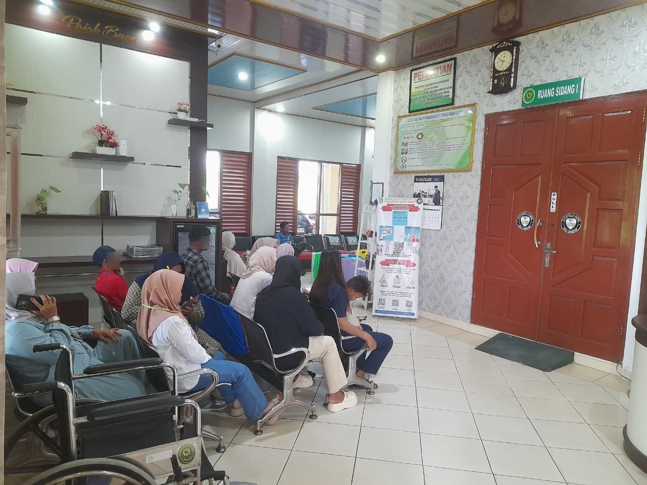 Sampit – Suasana tertib dan kondusif terlihat di ruang tunggu sidang Pengadilan Agama Sampit Kelas IB pada Senin, 2 Maret 2026. Para pihak yang akan mengikuti persidangan hadir sesuai jadwal dan menunggu giliran dengan tertib, mengikuti arahan petugas pelayanan.