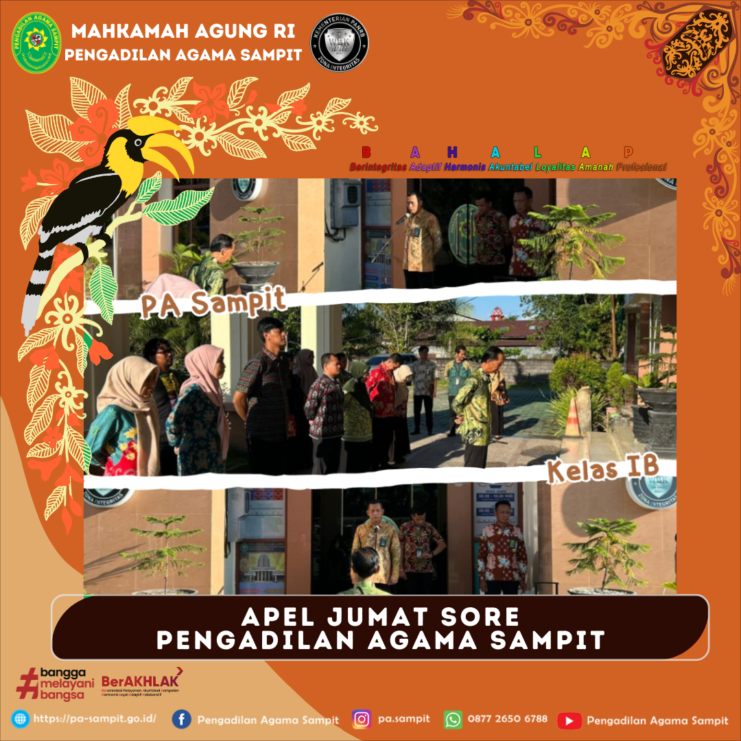 Pada hari Jumat sore 17 April 2026, pukul 16.00 WIB Pengadilan Agama Sampit kembali melaksanakan Apel Jum’at Sore.