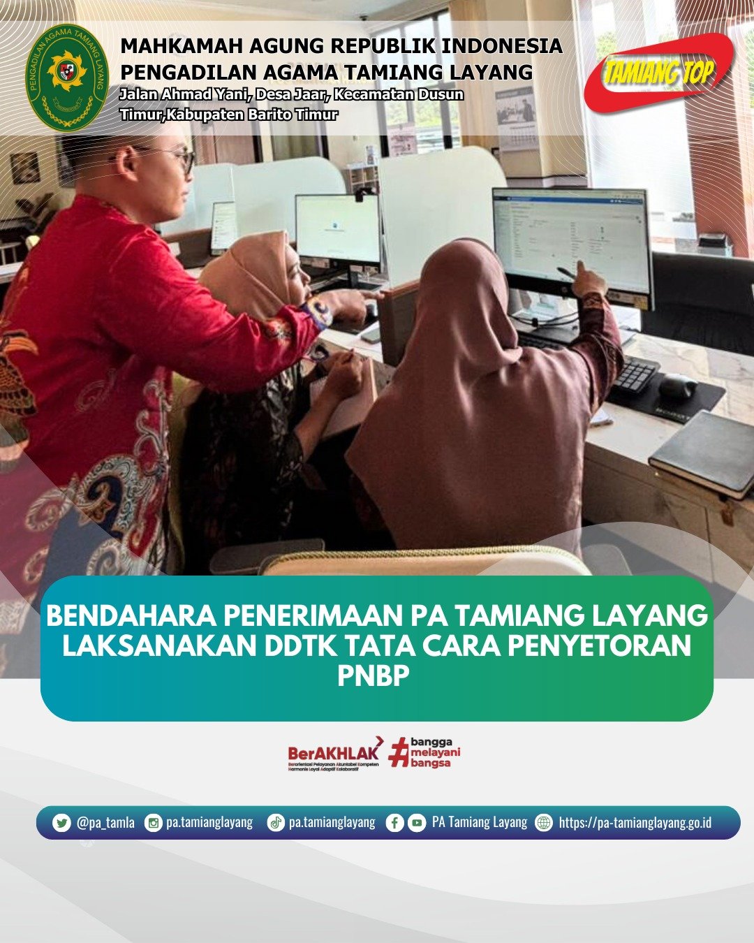 Tamiang Layang, Kamis, 05 Februari 2026 — Dalam upaya meningkatkan kompetensi serta memastikan keberlangsungan pelayanan yang optimal, Bendahara Penerimaan Pengadilan Agama Tamiang Layang, Raka Wisnhu Erlangga, S.H, melaksanakan kegiatan Diklat di Tempat Kerja (DDTK) kepada CPNS Pengadilan Agama Tamiang Layang, Lya Erika, S.H, dan PPPK PA Tamiang Layang, Istiqomah, S.Kom. Kegiatan ini berfokus pada sharing ilmu terkait tata cara penyetoran Penerimaan Negara Bukan Pajak (PNBP).