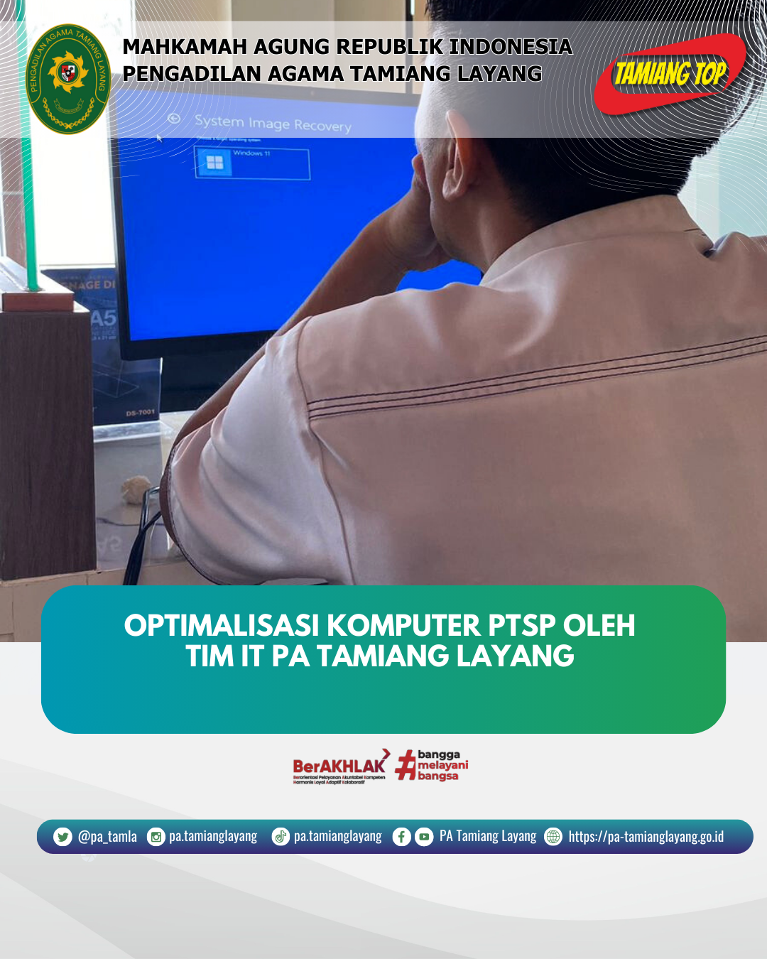 “Optimalisasi komputer PTSP ini kami lakukan agar petugas dapat bekerja dengan lebih lancar tanpa hambatan teknis, sehingga pelayanan kepada masyarakat menjadi lebih efektif,” ujar Tim IT PA Tamla