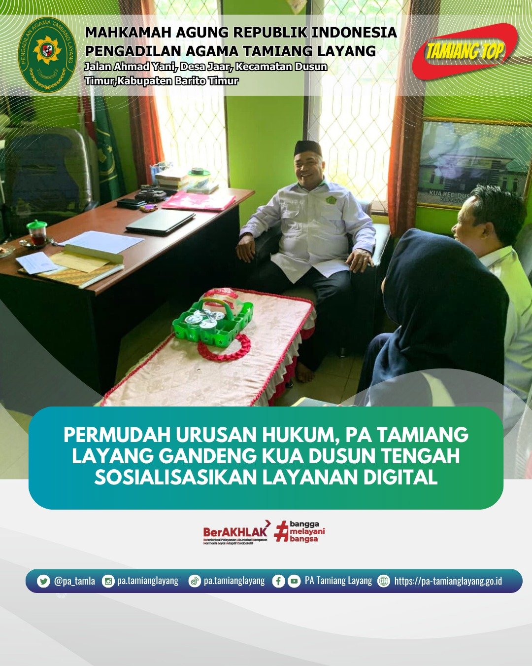 Tamiang Layang, Selasa 10 Februari 2026. Sidang keliling yang dilaksanakan pada Senin, 09 Februari 2026 kemarin berjalan dengan lancar. Urusan pengadilan kini tak lagi harus membingungkan. Panitera Pengadilan Agama (PA) Tamiang Layang melakukan langkah jemput bola dengan menitipkan video edukasi kepada Kantor Urusan Agama (KUA) Dusun Tengah sebagai sarana informasi bagi masyarakat setempat.
