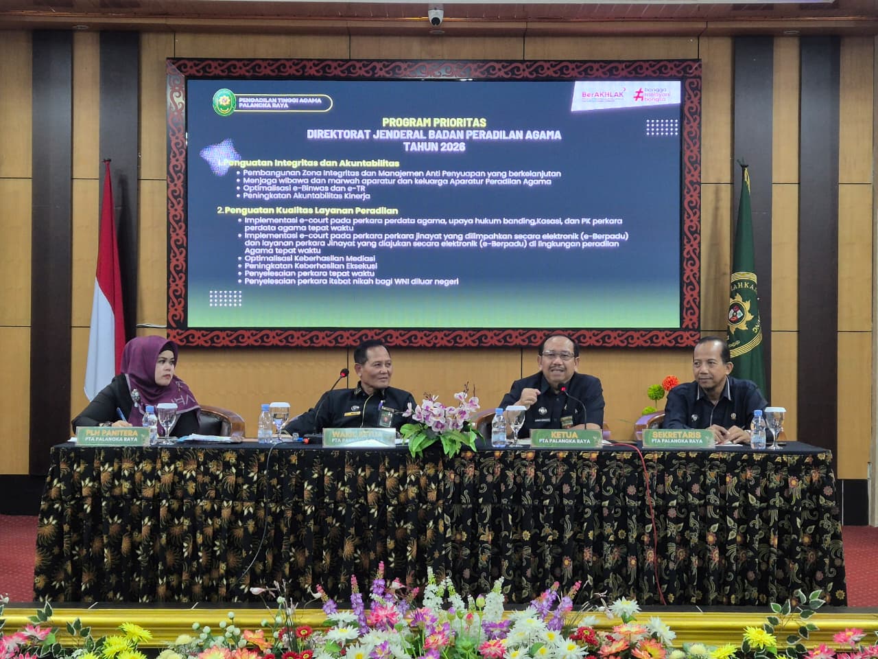 Setelah dilakukan pemaparan materi dari narasumber, dilanjutkan dengan diskusi pembahasan mengenai Program Prioritas PTA Palangka Raya Tahun 2026 dengan didasarkan pada Program Prioritas Direktorat Jenderal Badan Peradilan Agama Tahun 2026, diantaranya :