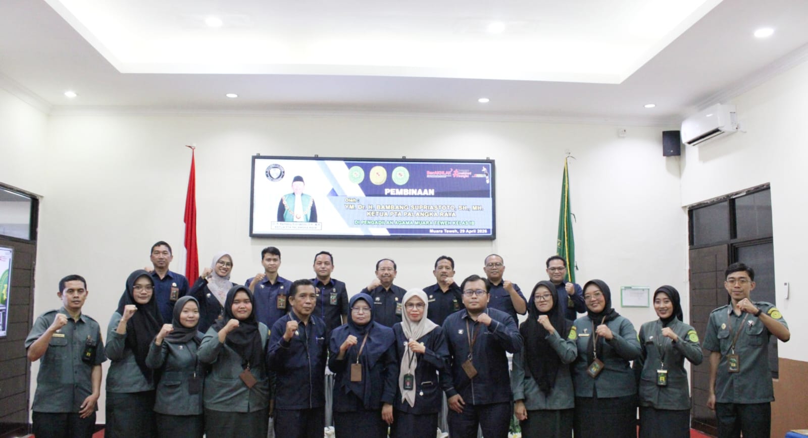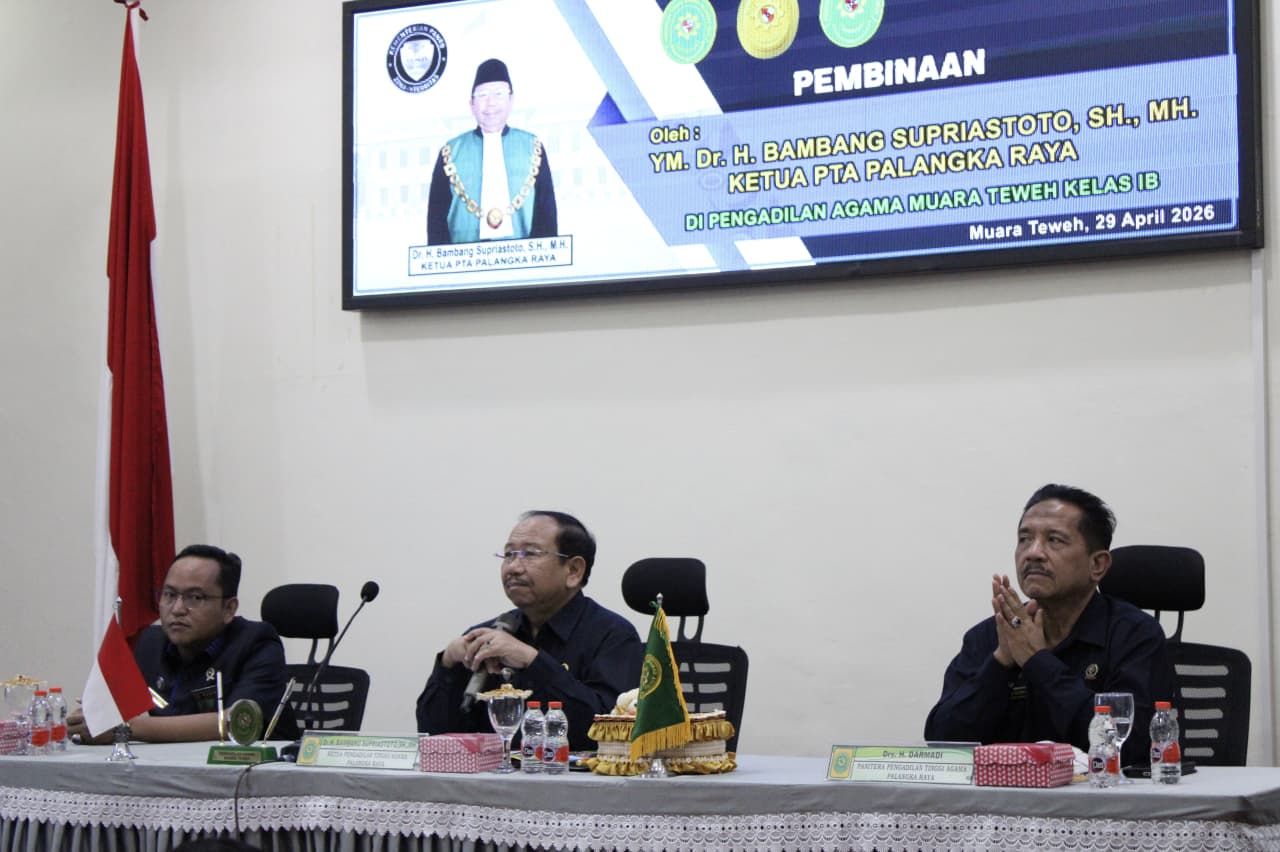 Bertempat di Ruang Aula KH. Hasan Basri, Ketua Pengadilan Tinggi Agama (PTA) Palangka Raya, Dr. H. Bambang Supriastoto, S.H., M.H., didampingi Panitera Drs. H. Darmadi melaksanakan agenda Pembinaan dan Pengawasan di Pengadilan Agama (PA) Muara Teweh pada Rabu (29/4).