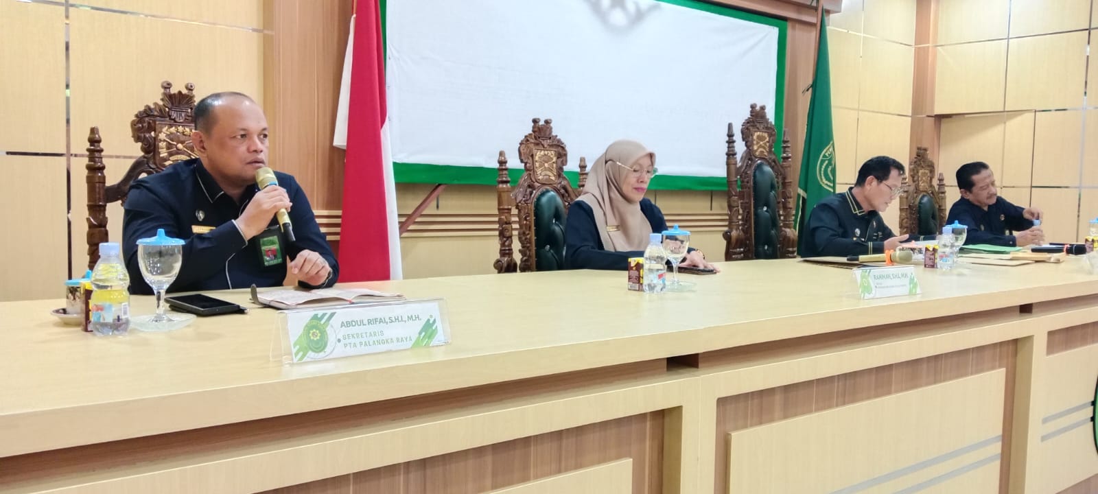 Kemudian pembinaan dilanjutkan oleh Panitera Pengadilan Tinggi Agama Palangka Raya Bapak Drs. H. Darmadi. Beliau menyampaikan beberapa hal yang dapat dioptimalka pada tahun 2026 ini, seperti untuk dapat lebih aktif dalam mengikuti kegiatan bimbingan teknis, memaksimalkan pengelolaan website, memaksimalkan pengerjaan input data pada aplikasi Kinsatker, meningkatkan pengelolaan berkas perkara serta meningkatkan tata tertib dalam administrasi persidangan.