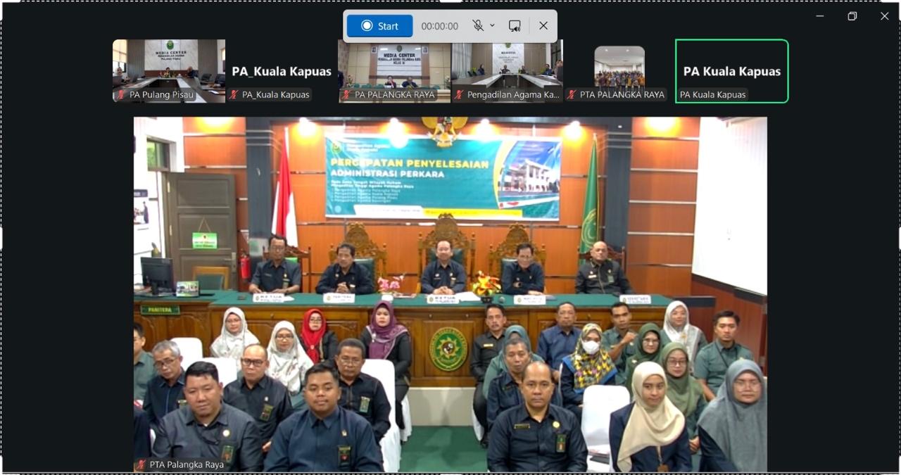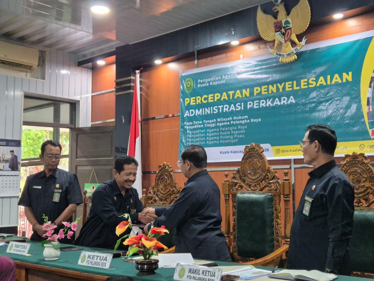Kuala Kapuas – Selasa, 3 Maret 2026 Pengadilan Tinggi Agama (PTA) Palangka Raya melaksanakan kegiatan Ekspos Percepatan Penyelesaian Administrasi Perkara dengan bertempat di Pengadilan Agama (PA) Kuala Kapuas. Selain diikuti oleh seluruh aparatur PA Kuala Kapuas, kegiatan ini juga dihadiri oleh seluruh aparatur PA Palangka Raya, PA Kasongan dan PA Pulang Pisau secara daring melalui aplikasi zoom meeting.