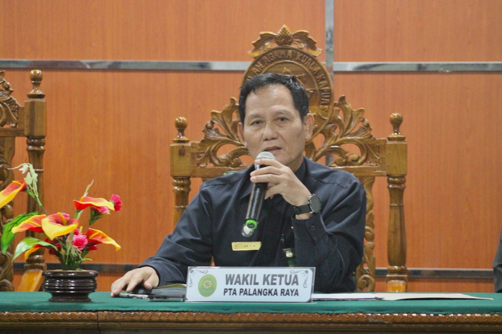 Dalam kesempatan yang sama, Ketua PTA Palangka Raya Bapak Dr. H. Bambang Supriastoto, S.H., M.H. memberikan beberapa arahan antara lain bahwa PTA sebagai kawal depan Mahkamah Agung RI harus melakukan penguatan integritas aparatur PTA maupun PA. Seluruh aparatur harus bisa menolak gratifikasi dan membangun pelayanan prioritas kepada masyarakat. Dalam hal percepatan perkara, harus mematuhi asas sederhana, cepat dan biaya ringan. Panitera memonitoring perkara secara berkala, melakukan optimalisasi mediasi dan pengendalian sisa perkara. Bapak Dr. H. Bambang Supriastoto, S.H., M.H. juga mengingatkan agar aparatur mengikuti diklat atau pelatihan untuk kelompok rentan agar pelayanan ramah kelompok rentan (disabilitas, perempuan dan anak) bisa lebih humanis. Sebagai penutup, beliau berharap seluruh Ketua PA dapat menjadi agen perubahan sekaligus role model sehingga harus mengubah mindset sebagai pelayan pencari peradilan. Kemudian juga kepada seluruh hakim dan aparatur dapat menjaga marwah lembaga peradilan.