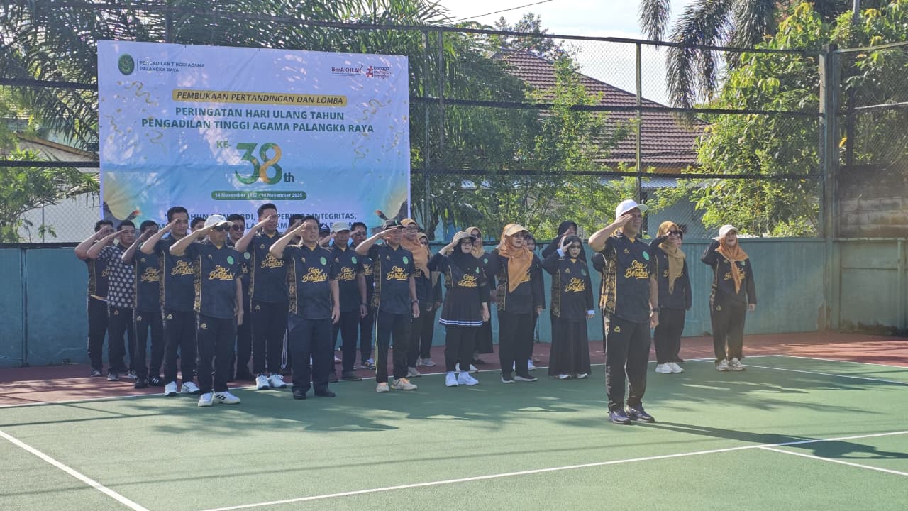 Palangka Raya – Rabu, 5 November 2025 pukul 07.30 WIB Pengadilan Tinggi Agama Palangka Raya melaksanakan Upacara Pembukaan Pertandingan dan Lomba dalam rangka memperingati Hari Ulang Tahun Pengadilan Tinggi Agama Palangka Raya ke-38. Acara bertempat di Lapangan Tenis Pengadilan Tinggi Agama Palangka Raya dan dihadiri oleh seluruh Aparatur dan Dharmayukti Karini Pengadilan Tinggi Agama Palangka Raya. Tema yang diusung pada HUT kali ini, yaitu “38 Tahun Mengabdi, Memperkuat Integritas, Mewujudkan Peradilan Agama Modern Berbasis Layanan Prima di Bumi Tambun Bungai”.