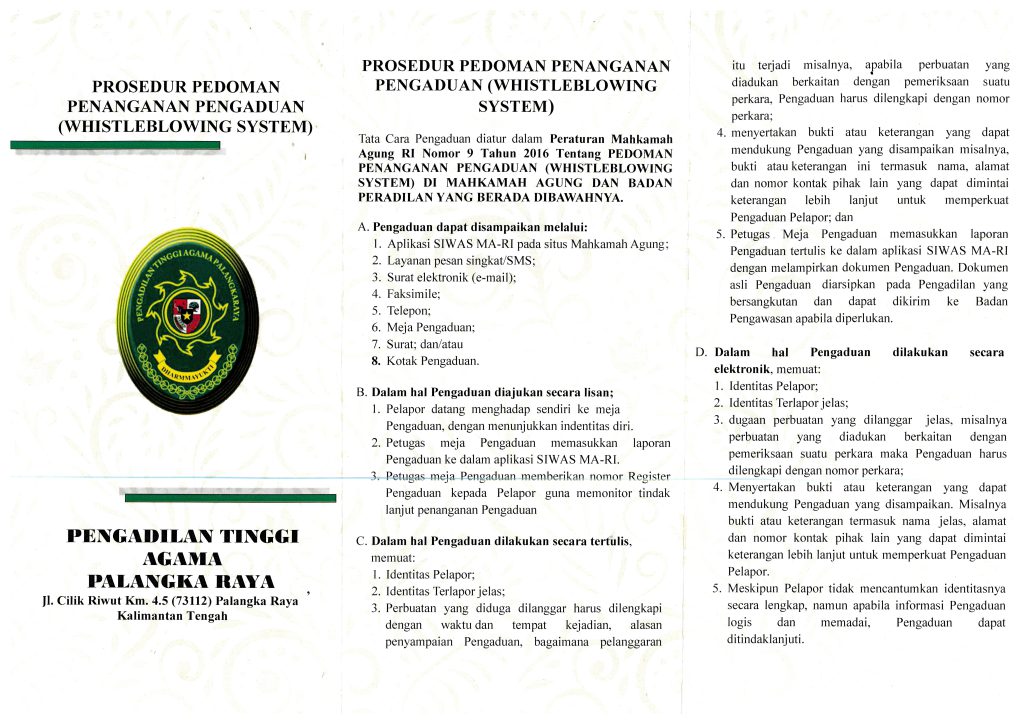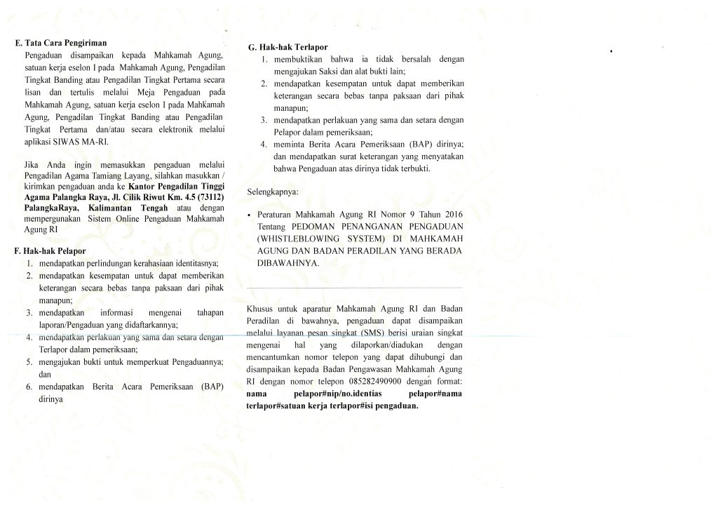 - Pada poin 2 petugas meja pegaduan adalah aparat pada Pengadilan Tinggi Agama Palangka Raya yang bertugas menerima pengaduan;