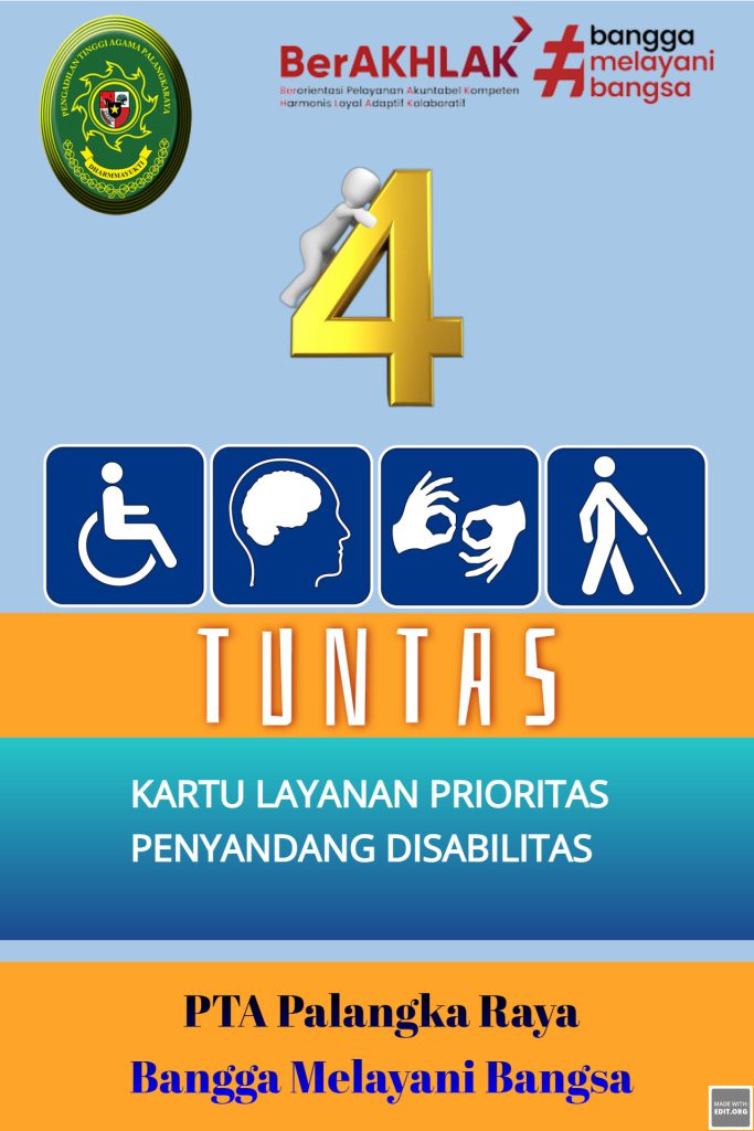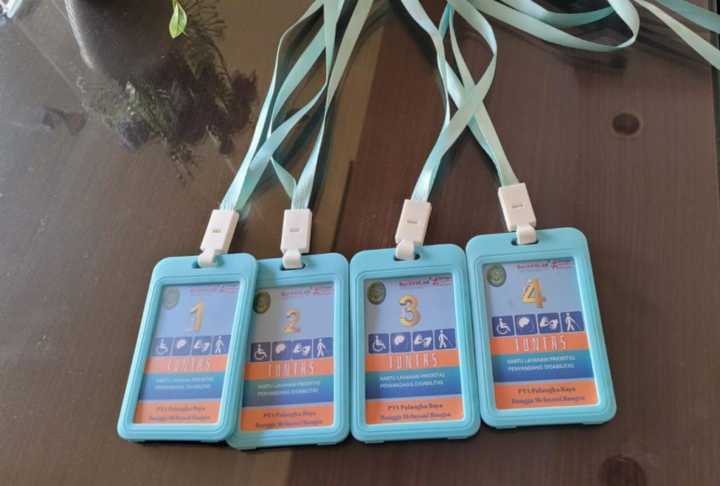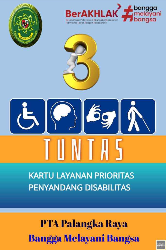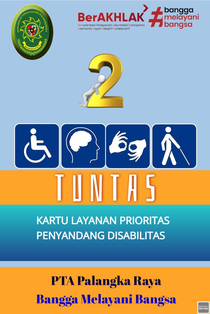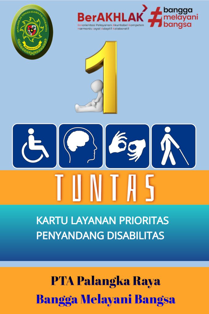 TUNTAS merupakan akronim dari Kartu Layanan Prioritas Peyandang Disabilitas. Kartu ini diperuntukkan bagi para pencari keadilan khususnya penyandang disabilitas yang datang ke Pengadilan Tinggi Agama Palangka Raya agar mendapatkan layanan dengan antrian khusus. Bagi penyandang disabilitas yang datang ke Pengadilan Tinggi Agama Palangka Raya tanpa pendamping, akan didampingi oleh petugas dimulai dari pengguna datang ke kantor Pengadilan Tinggi Agama Palangka Raya hingga pelayanan selesai diberikan.