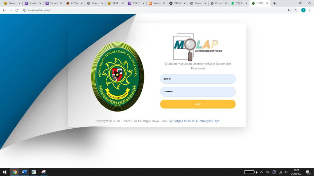 SIDAK : Merupakan aplikasi diciptakan untuk meningkatkan kinerja Kepaniteraan . Dimana aplikasi ini akan memonitor kegiatan administrasi kepaniteraan pada Pengadilan Agama se Kalimantan Tengah mualai dari proses pengajuan gugatan sampai pelaksanaan minutasi. Aplikasi ini sebagai monitoring kepada Pengadilan Agama dalam wilayah hukum PTA. Palangka Raya.